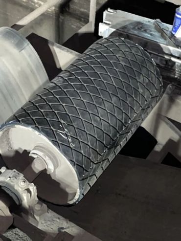 Con el objetivo de optimizar la eficiencia y la productividad, se desarrolló e implementó una solución integral para la polea afectada. Se realizó una recuperación in situ, evitando el reemplazo completo del tambor. La intervención consistió en la aplicación de un recubrimiento de hule de 1/2 pulgada de espesor, especialmente diseñado para resistir la abrasión y las condiciones de operación específicas del sistema.